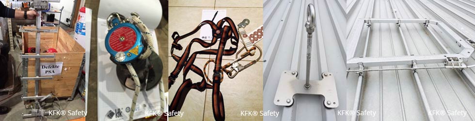 Arbeitssicherheit: UVV Prüfungen, Sachkundigenprüfung, Auffangsysteme, Absturzsicherungen, Fangwagen, Absturz-Sicherung-Systeme, Auffanggurte, UVV Prüfung, Safety Prüfungen, Sicherheitsprüfungen durch KFK® von Professionelle Auffanggurte, Seile, Fangwagen, Mitläufer, Dachabsturzsicherungen, Bandfalldämpfer, Sicherungsseile, Sicherheitshelm, Haltegurte, Seilkürzer, Fallschutzläufer, Auffanggerät, Bornack, Skylotec, Petzl, Schuberth, HACA