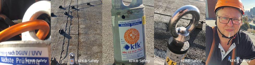 KFK® ist Ihr Partner für alle Safety Sicherheitsprüfungen, Safety Inspection, Prüfungen & Wartung & Reparaturen von Sekuranten* & Anschlagpunkten & Seilsystem & Steigleitern & Lichtkuppeln und Geländer. KFK® hat einen bundesweiten Prüfservice für Absturzsicherheit.